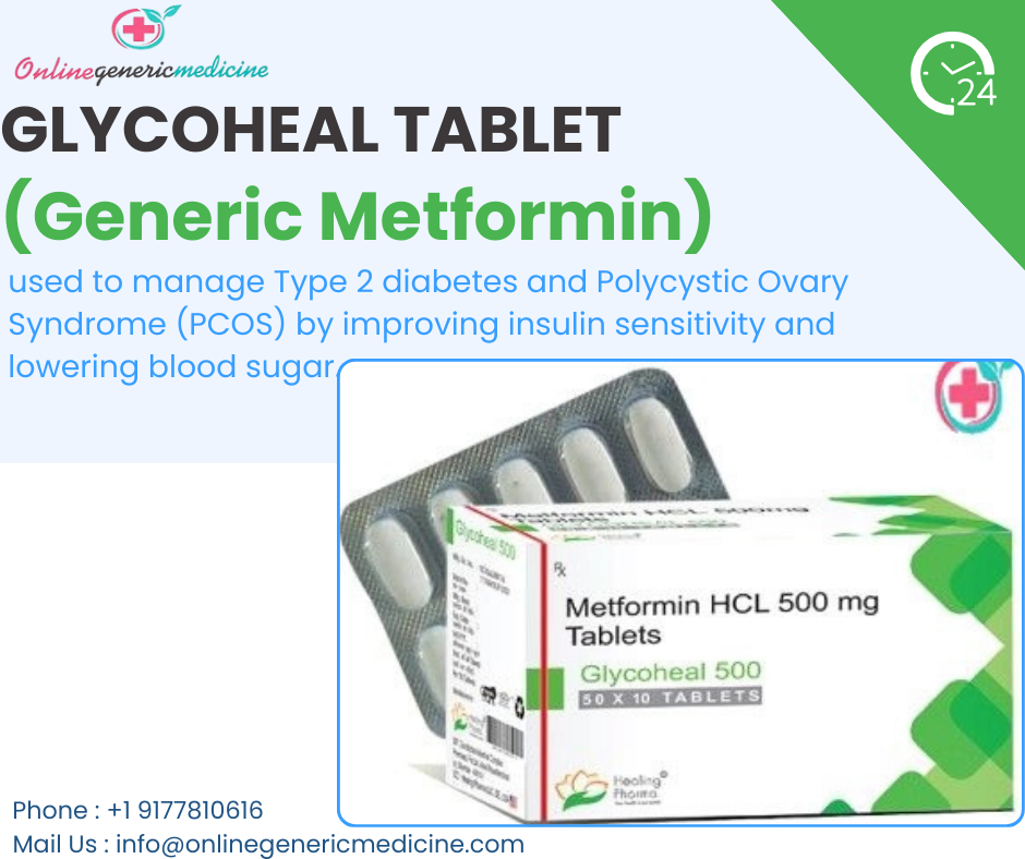 Glycoheal Tablet (Metformin) is widely used to help manage Type 2 Diabetes Mellitus and control high blood sugar levels. Explore the latest Metformin price, including metformin 500 mg price options, and compare Glucophage cost alternatives. Glycoheal offers trusted quality and affordability for those prescribed Metformin tablets. Learn more about dosage, benefits, and pricing details to make informed decisions about your diabetes management treatment. Available in affordable price for more information please connect us; https://www.onlinegenericmedicine.com/glycoheal-tablet-generic-metformin